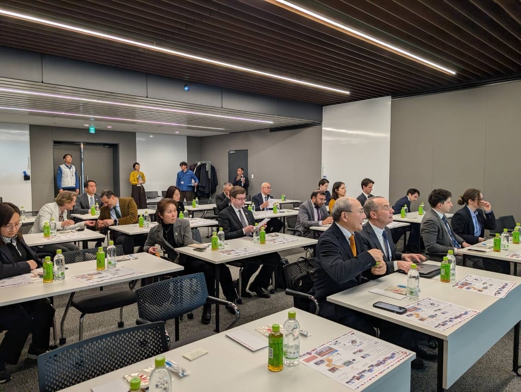 On February 18, the S&T Diplomatic Circle Kansai explored the world of advanced electronics components at Murata Manufacturing Co., Ltd., visiting their Nagaoka Division in Nagaokakyo, Kyoto. Founded in Kyoto in 1944, Murata has grown from a local ceramics specialist into one of the world's foremost electronics component manufacturers, holding dominant global market shares in capacitors, filters, sensors, and high-frequency parts that power everything from smartphones to electric vehicles.