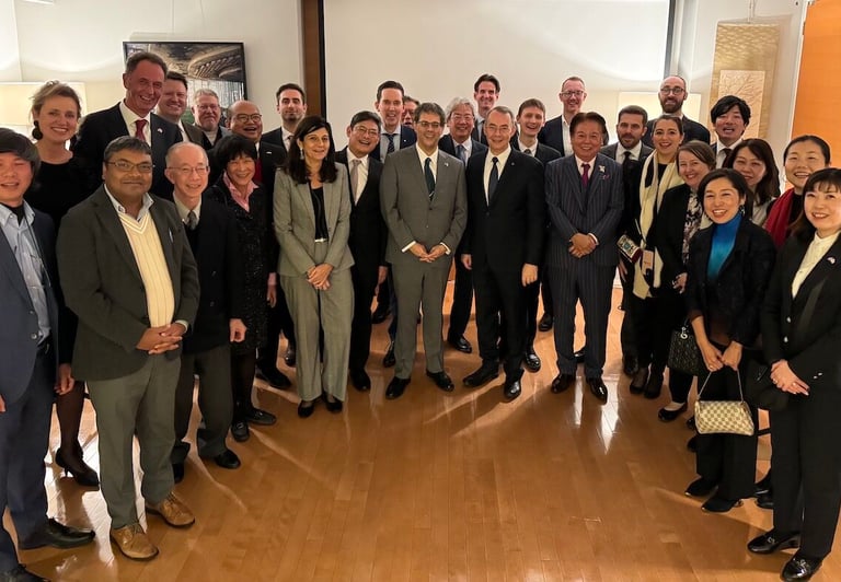 We marked the end of a second successful year of the Science & Technology Diplomatic Circle Kansai (S&TDC) with great pleasure and a rich program at the residence of the Consul-General of the Kingdom of the Netherlands. The Year End Event 2023 was a joint event for all S&TDC members, with 35 guests that included representatives from prestigious institutions visited throughout the year, which included Keihanna-ATR, RIKEN SPring-8, Iwatani Corporation Hydrogen R&D, Kyoto Research Park, Panasonic RE100, IPS Center Kyoto University, Shionogi &Co., Ltd, ROHM Co., Ltd., ONO Pharmaceuticals, and Mitsubishi Heavy Industries Takasago Hydrogen Park.